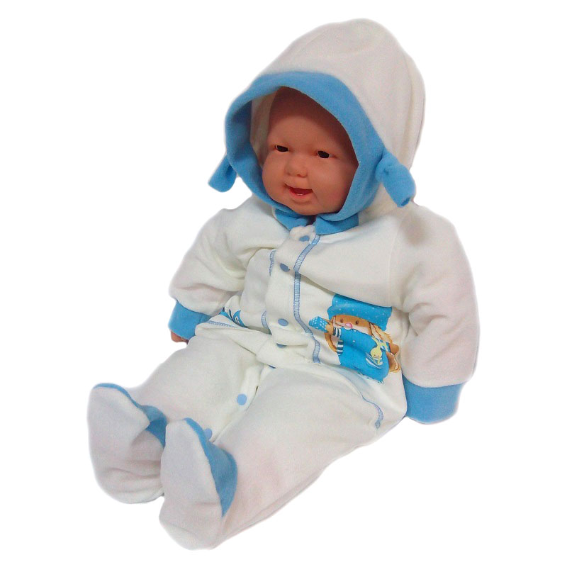 Комбинезон с капюшоном (декорирован ушками), с закрытыми ножками, рукавчики на манжетах, спереди и на ножках на кнопочках. Комбимнезон подойдёт как для прогулок в летнюю, прохладную погоду, так и для поддёвки в меховые мешочки.