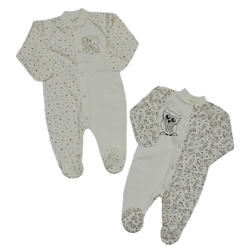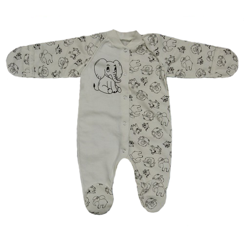 Комбинезон без воротничка, с длинным рукавом, спереди и между ножек на кнопочках.