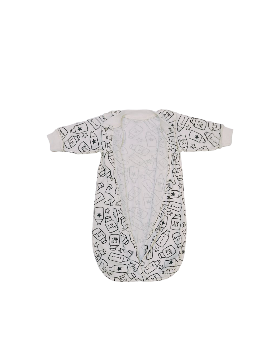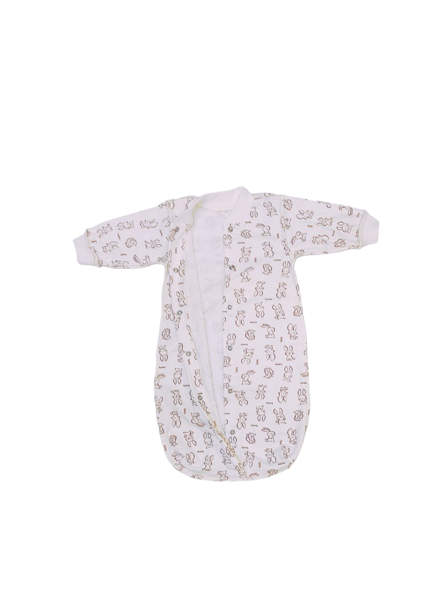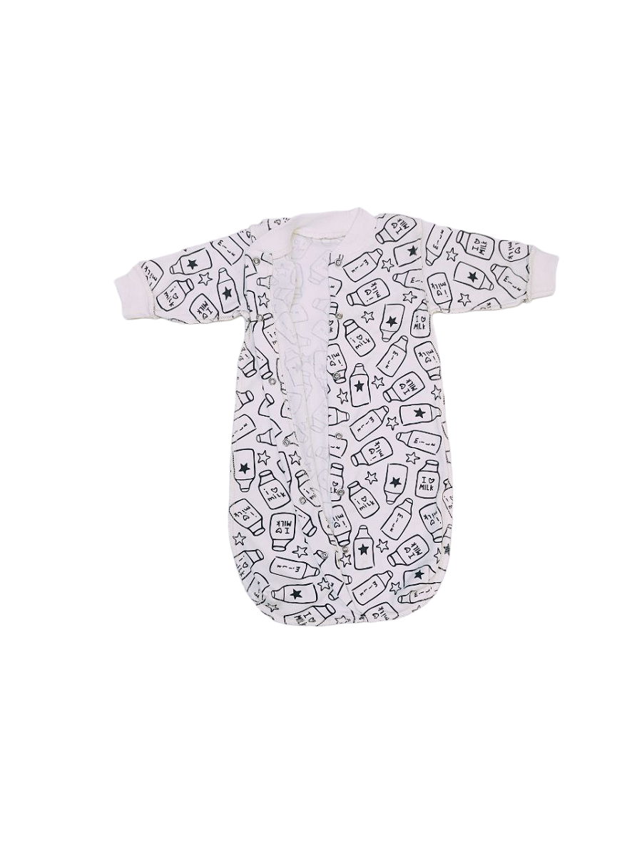 Мешочек выполнен из 100% хлопка (интерлок). Мешочек с длинным рукавом на манжете, спереди на кнопочках.