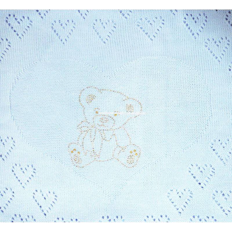 "МоёДитё" плед ажурный на синтепоне "Мишка" голубой "Незабудка"